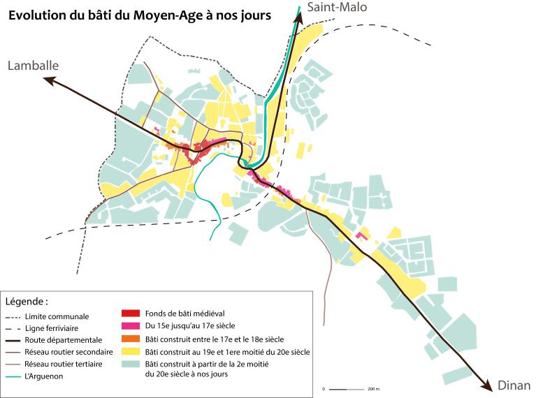 - une part importante de la commune de Corseul incluant le faubourg de Nazareth, le tertre de Brandefer (Section A, B, C et une partie de la section L).