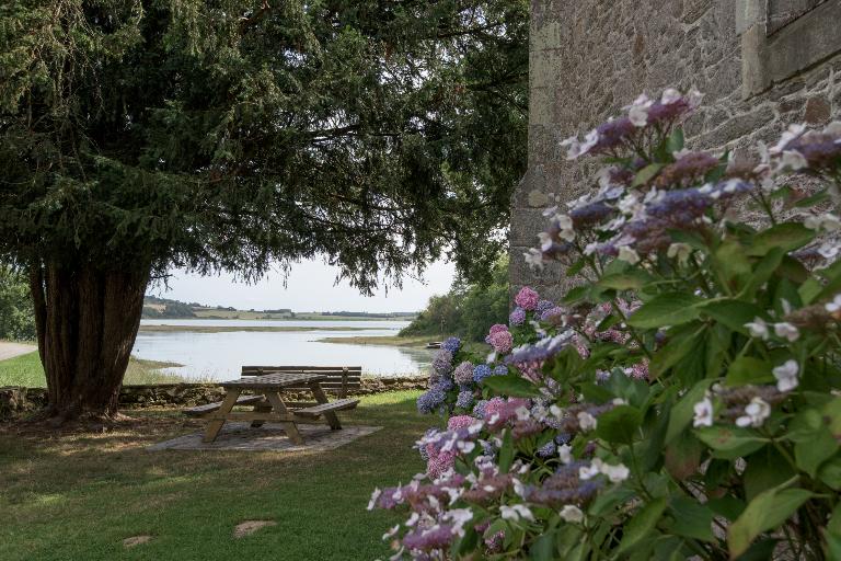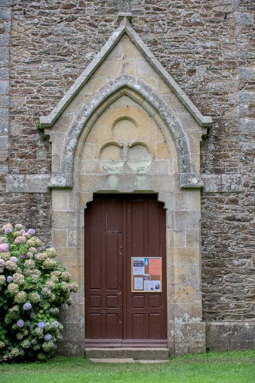 Le mur de clôture de la chapelle remploie un vestige de l'ancienne chapelle ornée d'une inscription : M. P . THOR . DE. PLO signifiant Maître Pierre Thoreau recteur de Plouêr