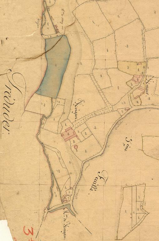 L'alignement sud subsiste dans un état proche de celui de 1935. D'est en ouest, on peut identifier : un logis (déclassé en étable), une grange avec porte charretière surmontée d'un grenier accessible par une lucarne (appareillage mêlant moellons et pierres de taille) et un vaste logis dont la partie ouest semble avoir été remonté au 19e siècle en deux temps (remplois d’éléments anciens comme une porte du 15e ou du début du 16e siècle). Les pentes de toit du logis de l'entrée et de la grange ont été modifiées. Un rucher est aménagé dans le pignon est de l'alignement. Ces niches ou orbes sont des emplacements pour des ruches circulaires en osier ou en paille.