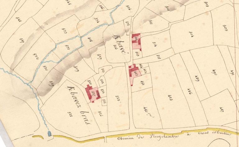 Les dispositions anciennes du manoir de Kerbavé sont connues par les cadastres de 1814 et de 1848. Le manoir a donné son nom au ruisseau de Kerbavé situé immédiatement au nord (ou l'inverse) tandis qu'une fontaine domestique est située au sud-ouest (non repérée).