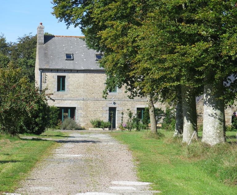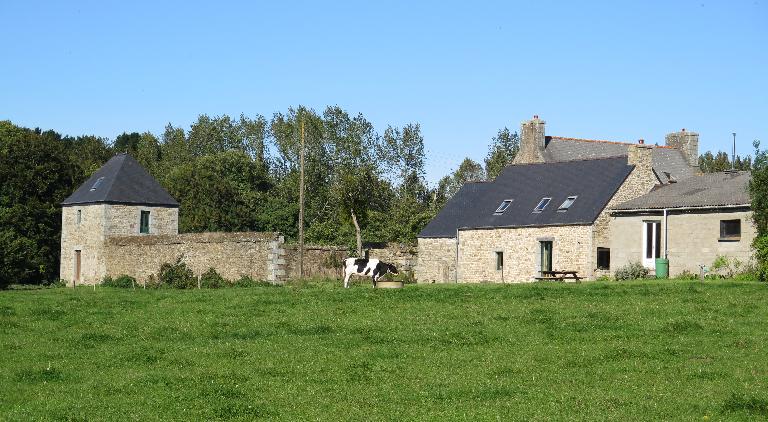 Le nouveau logis de la ferme est construit en moellon équarri régulier de granite roux avec chaînages d'angle, entourages des ouvertures, bandeau soulignant l'étage et souches de cheminée en pierre de taille de granite gris. Un collage est visible dans la façade sud (changement d’entrepreneur ? Problème d'approvisionnement en pierre ?). Au rez-de-chaussée, des ouvertures ont été élargies (4e quart du 20e siècle ?) de façon très soignée (utilisation de linteaux monolithes en granite).