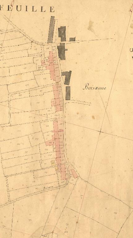 Le hameau s'organise en deux regroupements significatifs d'habitat construit à deux époques différente. En effet, à l'est près de l'ancien manoir de Boisanne on trouve un habitat plus ancien remontant au 17e siècle, et à l'ouest le hameau se développe à partir du 19e siècle avec l'ajout de nombreux bâtiments.
