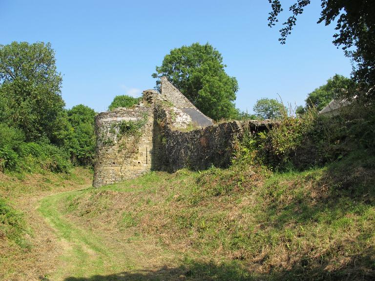 Le cadastre ancien mentionne la parcelle 457 comme "butte du grand pont", la régularité du tracé des courtils 458 et 459 du cadastre ancien permet d'envisager la présence d'un ancien pont fortifié. La tour flanquante permettait de contrôler les arrivées dans le site fortifié.