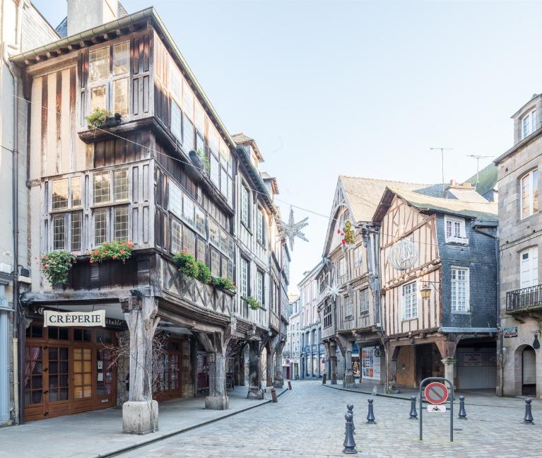 Caractéristiques d'un corpus important de maisons à porche en Bretagne, les maisons des 1 et 3 la rue de l'Apport témoignent, avec l'usage, à proximité d'un marché, d'une surface abritée sous les porches, du fort développement de l'activité du négoce dans le contexte d'un commerce toilier dynamique à l'échelle européenne. La façade du n°1 présente également, par ailleurs, la structure d'une façade vitrée portée sur l'extérieur de l'ossature des poteaux, appelée structure "à vitrine" ou "à façade-rideau". Elles bénéficient d'un classement au titre des Monuments Historiques depuis 1961.
