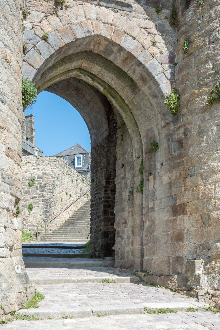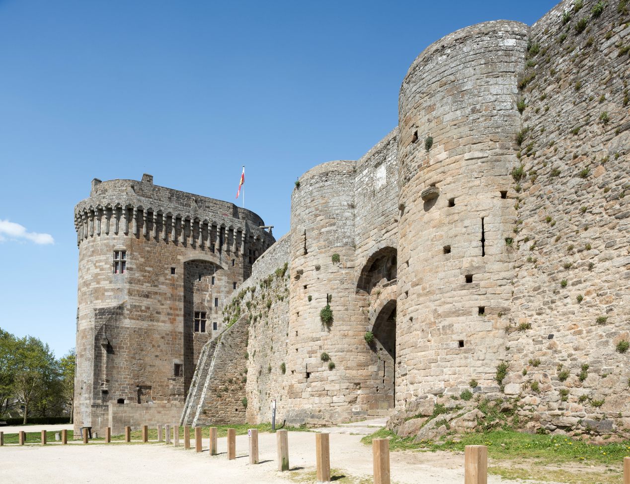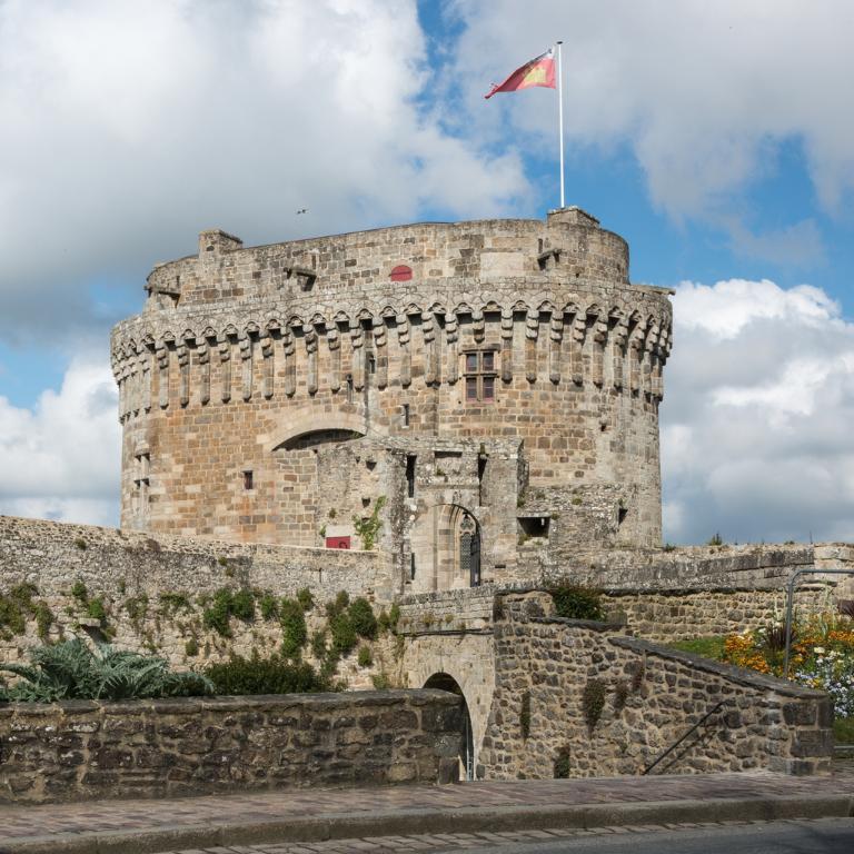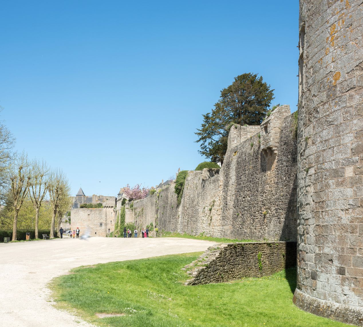 S’il est représenté au 11e siècle sur la tapisserie de Bayeux, le castrum primitif de Dinan n’a laissé aucun vestige. Bien qu'une "clôture de pierre" défendant la ville soit mentionnée en 1154, ce n’est qu’avec l’installation sur le trône ducal de la maison de Dreux, en 1213, que l’emplacement stratégique de la ville a été fortifié sur une emprise de près de 30 hectares, peu modifiée par la suite. Inspirée des innovations des architectures développées par Philippe-Auguste au Louvre à Paris, l’enceinte alterne courtines et tours massives, et ménage plusieurs portes vers les routes qui convergent à ce carrefour commercial déjà bien identifié. En 1380, l’enceinte est complétée par les Montfort d’un donjon à la pointe du confort. Dans le climat qui précède le conflit franco-breton, plusieurs mandements attestent de mesures fiscales destinées à moderniser le programme défensif en l’adaptant à l’usage de l’artillerie : sept puissantes plateformes sont alors érigées sous le commandement de Jean de Coëtquen avant 1488. Tout en étant particulièrement bien conservée, la muraille fait l’objet de constantes restaurations. Elle fait l'objet d'un classement au titre des Monuments Historiques sur l'ensemble de ses 2650m dès juillet 1886.