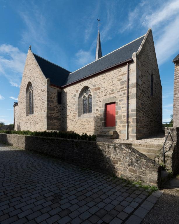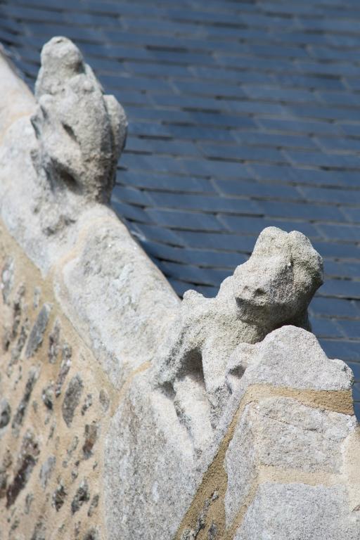 Les rampants du pignon très ornés de la chapelle sud, feuilles retournées, petits personnages dénudés, animaux sont attribuables à une autre campagne datable de la première moitié du 16e siècle. Ils se réfèrent aux décors des gables de la chapelle saint Guen à saint Tugdual (56) datés de 1540.