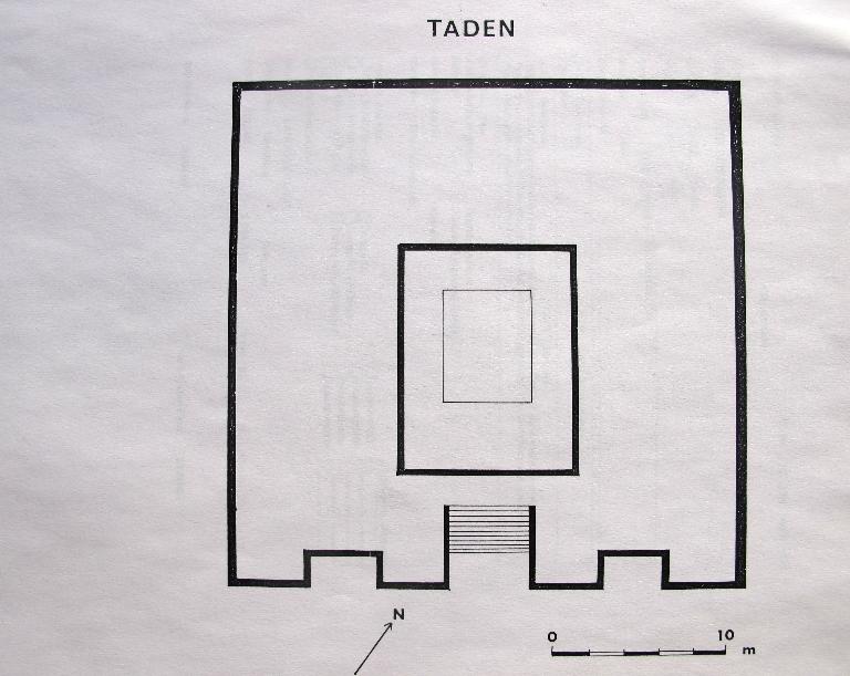 Temple octostyle à colonnes jumelées avec escalier d'accès au déambulatoire, emplacement du socle accueillant la statue de la divinité dans la cella. Le plan du bâtiment n'a été vu qu'une seule fois en prospection aérienne lors de la sécheresse de 1976. Les substructions conservées sont sans doute en élévation.