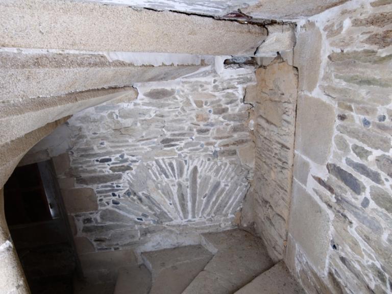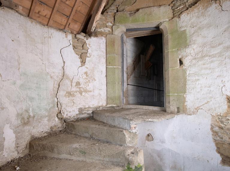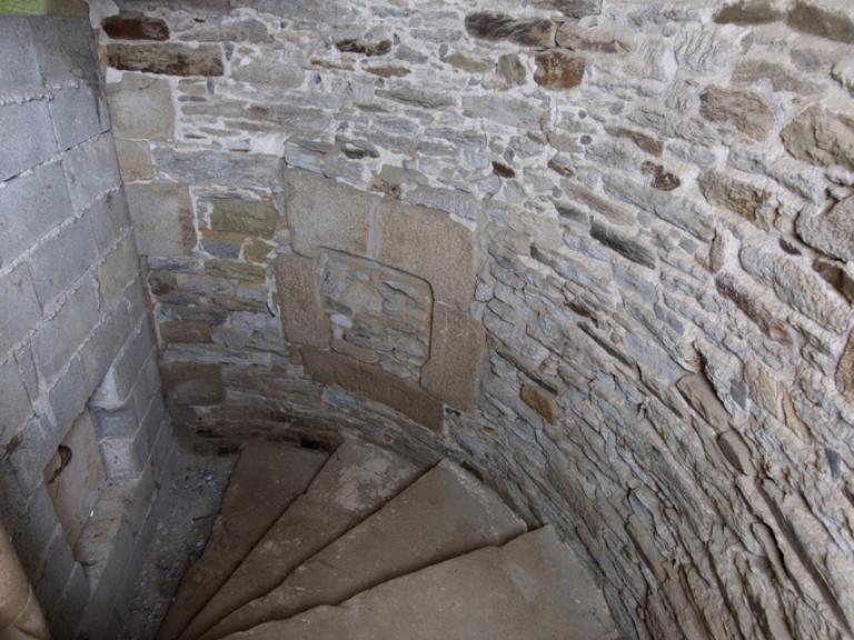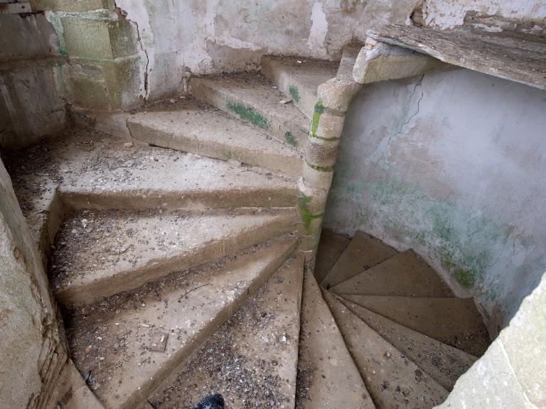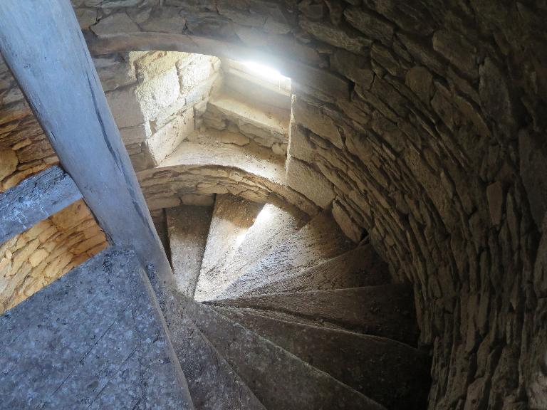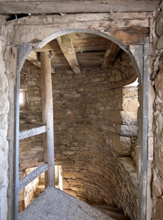 Au couchant dudit édifice une cage d’escalier saillante et en forme de pavillon en majeure partie construite en maçonnerie, en ladite cage un escalier en charpente servant à fréquenter le double.