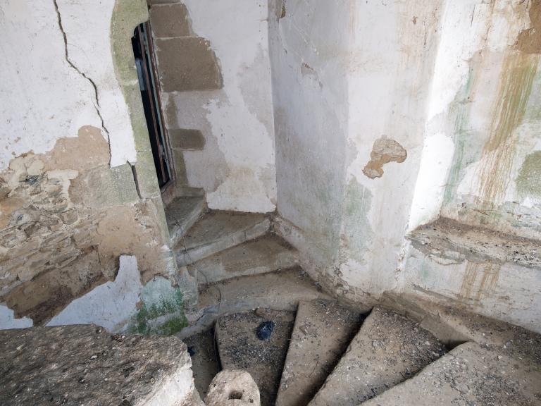 Pour hentisse au double un escalier en pierres de grains éclairé par deux jours de taille orné de vitrage.