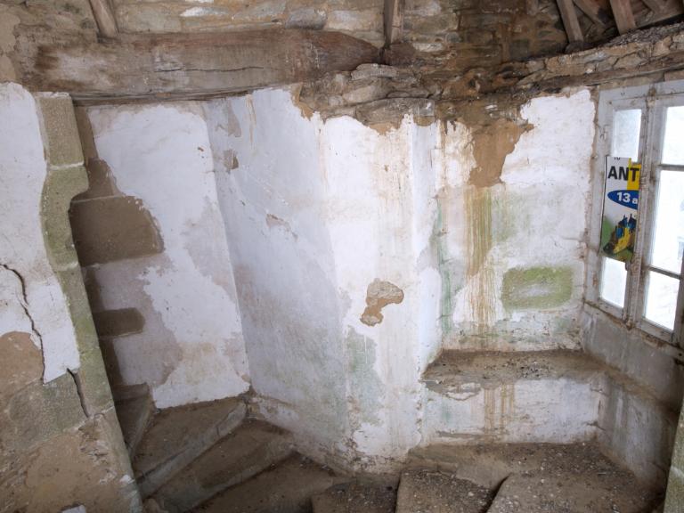Au levant du vestibule une petite chambre sur terre servante de décharge éclairée par deux anciennes ouvertures de grosses tailles.