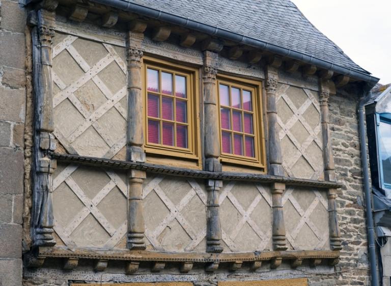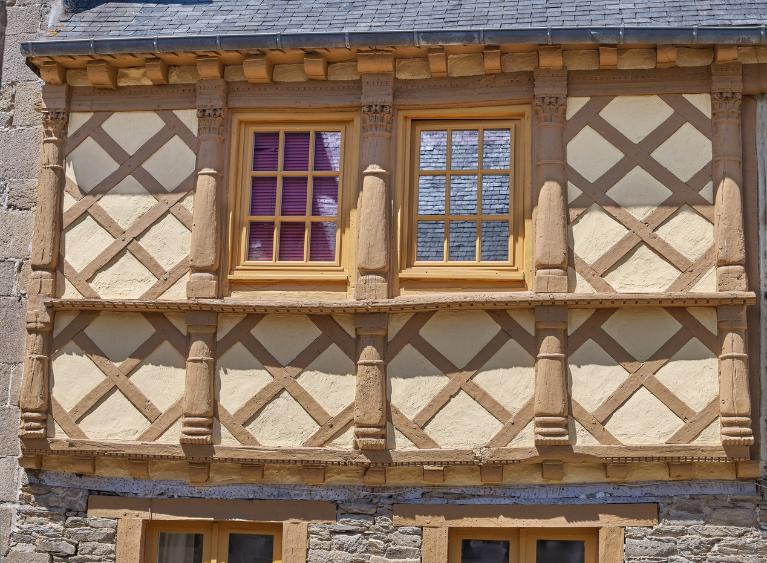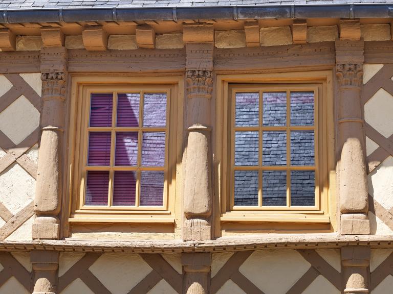 En 1966, un enduit à faux appareil couvrait le pan de bois comme le montre les photographies de Martine Garczynska et Thierry Prat pour les Monuments historiques.