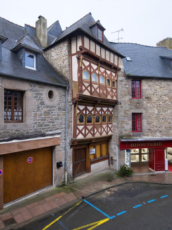 La maison Saint-Pierre aurait été édifiée vers 1490 par un marchand toilier. Elle serait une des premières maisons du type dit à pondalez, conçu pour la noblesse commerçante dans des villes portuaires du nord de la Bretagne. Cet exemple précoce explique plusieurs maladresses d'exécution : le vaisselier et l'évier en pierre ménagés dans le mur sud sont en partie escamotés par l'escalier, les chambres sur rue et celles sur cour ne sont pas tout à fait aux mêmes niveaux. Dans la 2e moitié du 17e siècle, les galeries ou pondalez qui reliaient les chambres sur rue aux chambres sur cour sont supprimées, et un escalier secondaire en vis est construit à l'arrière de la maison pour accéder plus commodément aux dites chambres.