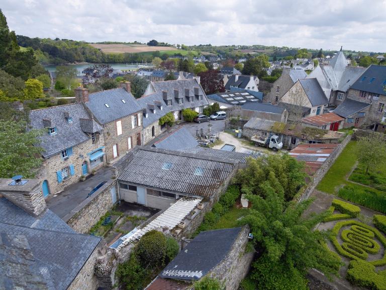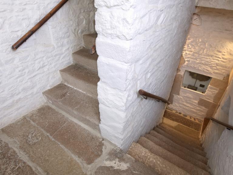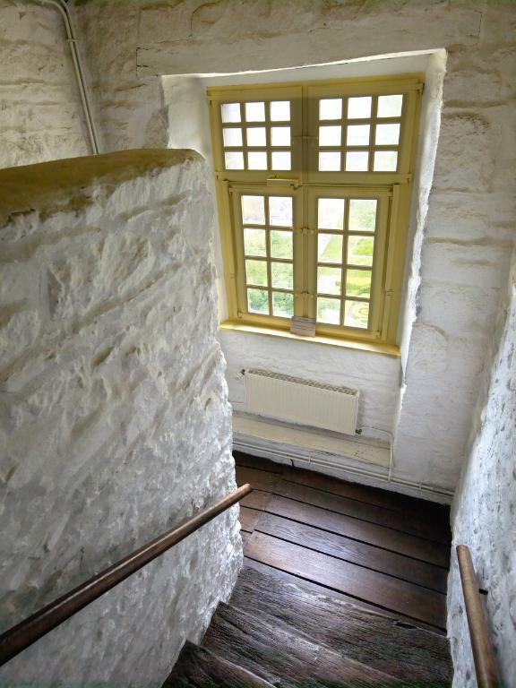 Le plan double en profondeur est traversé par un couloir qui mène à la cour arrière et au jardin. Il comprend huit pièces à feu et un escalier rampe sur rampe couronné d'une pièce haute. Desservie par un escalier en vis secondaire, cette pièce en vigie reprend la tradition des pièces hautes des manoirs, signe de noblesse des armateurs. Véritable cage de bois, elle possède cependant un mur en maçonnerie pour la cheminée. Ce lieu confidentiel sert à ranger les actes, les contrats et le coffre-fort, il offre de surcroît une vue sur la zone portuaire du Jaudy afin d'avoir un oeil sur le mouillage et l'armement.
