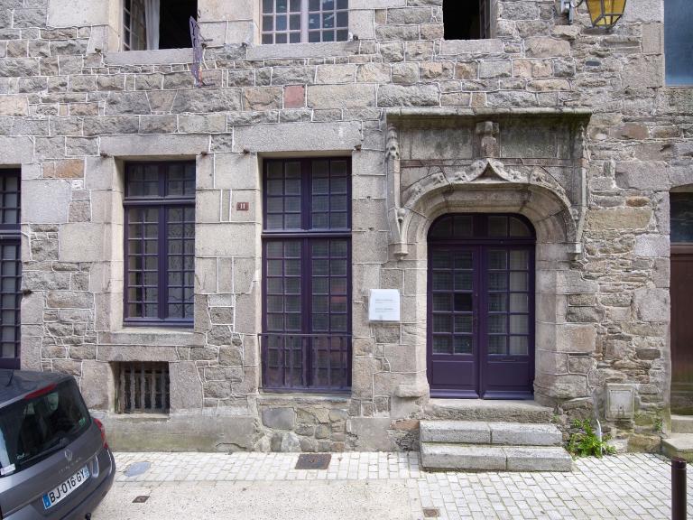 Si le portail gothique est datable des années 1500, la façade sur rue et les dispositions intérieures de cette maison (portes en arc plein cintre et escalier rampe sur rampe notamment) sont datables par analogie du premier quart du 17e siècle. Cette reconstruction pourrait être consécutive d’une destruction survenue lors d’un épisode des guerres de la Ligue en Bretagne (1588-1598).