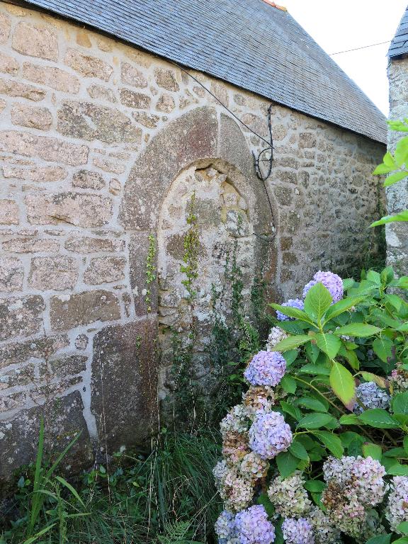Deux édifices intègrent dans leurs maçonneries des statues anciennes comme au carrefour de Garzigou : Christ en croix et abbé intégrés dans un logis construit en 1867, ou à Kerampoder : statue d'une sainte pouvant provenir de la chapelle Saint-Siméon. Ces statues étaient censées protéger les logis.