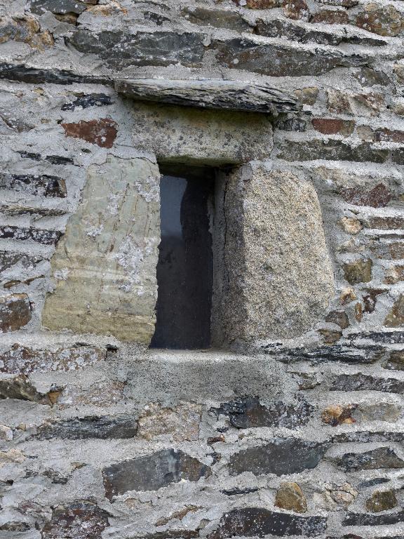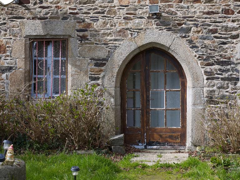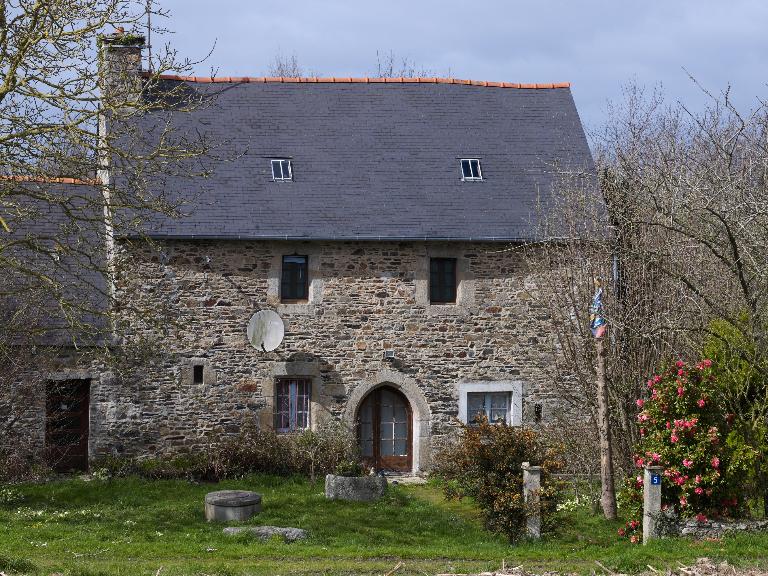 Logis construit en petit moellon de schiste et encadrement de baies en pierre de taille de granite, à étage carré. L'absence de cheminée et de fenêtre (avant le percement d'une baie moderne) dans la pièce située à droite de la porte d'entrée laissent à penser que cet espace, accessible par la porte arrière était dévolu aux bêtes ou au cellier. L'étage habitable abrite deux pièces dont une chambre à feu superposée à la salle. Un escalier intérieur en vis desservait l'étage, probablement placé dans la salle, à l'opposé de la cheminée. Le fait d'habiter l'étage dans le monde rural, à cette époque, est un signe de distinction qui place ce type de maison à part dans la hiérarchie paysanne.