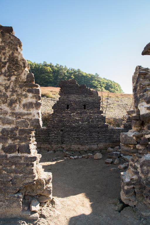 Site d'écluse comprenant : écluse, déversoir, maison éclusière et four à pain. Les éléments de second oeuvre ont été démontés avant la mise en eau du barrage. Chaque assec permet de constater de la destruction des vestiges : murs, four à pain.