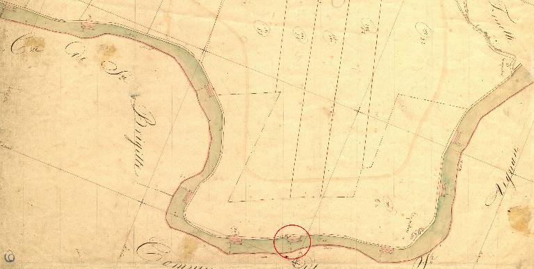 Site d'écluse noyé lors de la mise en eau du barrage de Guerlédan en 1929.
