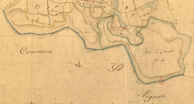 Site d'écluse noyé lors de la mise en eau du barrage de Guerlédan en 1929.