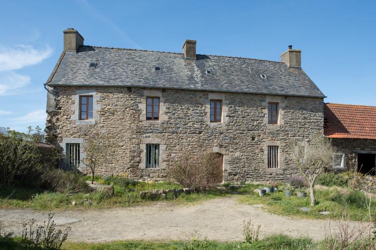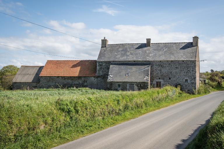 Ferme concertée dont les bâtiments sont construits autour d'une cour partiellement fermée. Une grange et une remise à poteau unique en bois sont édifiées en alignement du logis, à l'est. Les anciennes étables sont édifiées en face, de l'autre côté de la cour, prolongé par un hangar moderne. Construit en moellon de schiste avec encadrements de baies en granite, le logis présente une élévation à quatre travées. L'escalier tournant à retour en bois occupe une partie du vestibule d'entrée dont l'une des deux cloisons en bois subsiste. La rampe d'appui de l'escalier a conservé ses balustres plats découpés dans des planches. Construite en appentis contre le mur arrière du logis, la laiterie est accessible depuis l'intérieur de l'habitation par une porte cintrée percée dans le mur nord.
