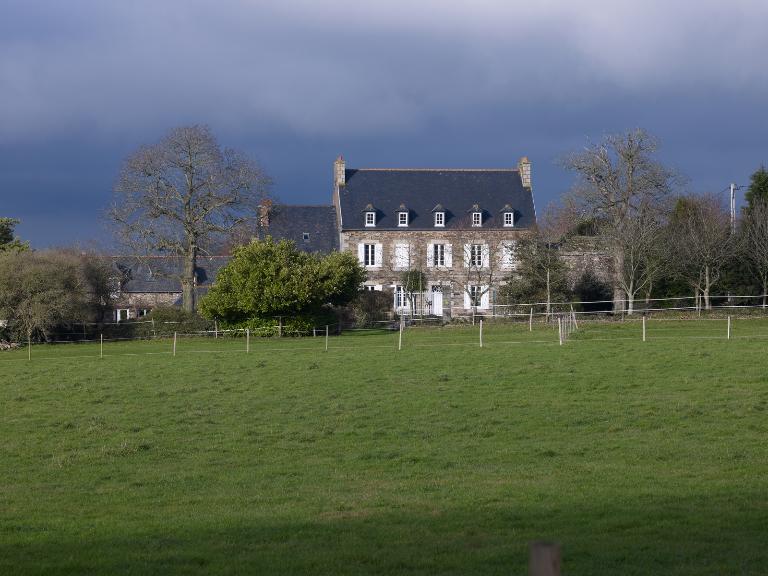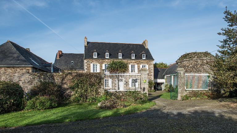 Edifié pour partie à l'emplacement du logis initial, le nouveau logis est en moellon de schiste réglé et assisé avec encadrements de baies, chaînage d'angle et bandeau en pierre de taille de granite. Il possède une double orientation nord-sud avec élévations ordonnancées à cinq travées. L'entrée située au centre de la maison ouvre sur un vestibule dallé de granite qui dessert les quatre pièces du rez-de-chaussée : la salle à manger et le salon placés en vis à vis, ce dernier entièrement lambrissé avec placards muraux et cheminée à trumeau. Les deux pièces sont doublées au nord par la cuisine et son garde-manger et la buanderie. Au fond du vestibule, l'escalier tournant à retours en bois dessert l'étage et ses quatre chambres pourvues d'une cheminée. Un grand comble surmonte l'ensemble. Des dépendances à usage de remise à voitures et d'écurie ferment la cour à l'ouest tandis qu'un hangar et une remise agricole bornent cet espace à l'est. Au sud, la cour est limitée par de hauts murs dans lesquels sont pratiqués de grandes ouvertures fermées par des clair-voies en bois à l'imitation de grilles en fer forgé. A l'ouest de la précédente, la basse-cour est enclose de murs, fermée au nord par d'anciennes dépendances à usage d'étables et de soues construites en alignement du logis. Un grand jardin est entièrement enclos au nord de cet ensemble.
