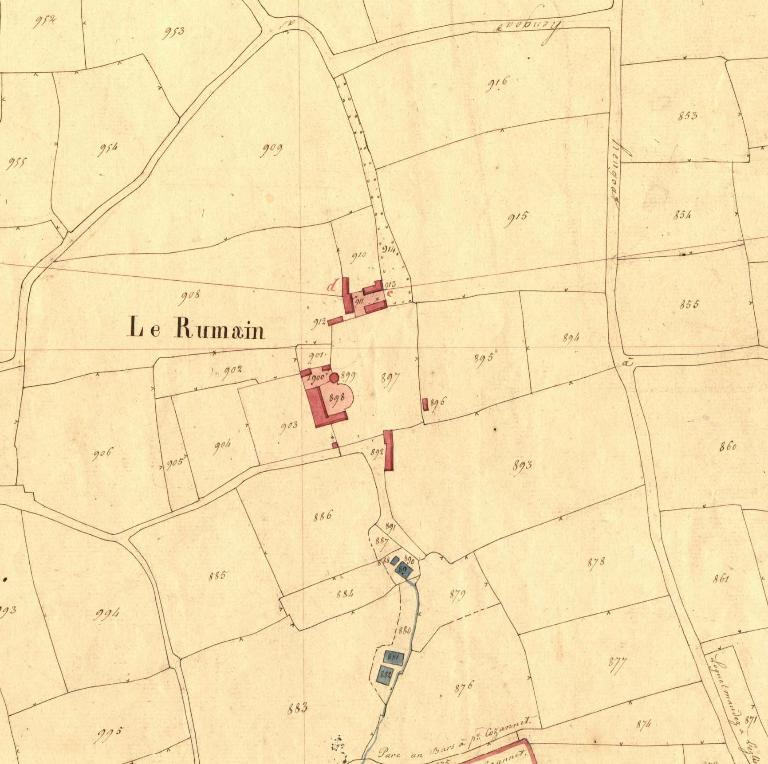 Les quatre routoirs du Rumain sont encore visibles sous la végétation, dans un vallon, à quelques mètres à l'ouest de l'ancien manoir (cf. dossier Les routoirs du Rumain).