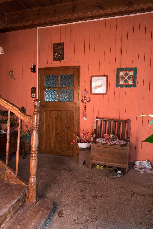 La ferme est établie au sud du bourg, au bord de la route qui mène à Pommerit-Jaudy. Elle est composée d'un logis, d'une dépendance et d'une remise construites en alignement. Au sud, en face du logis, les étables bornent la cour séparée de la route par des murs de clôture. Pour éviter la divagation des animaux sur l'aire à battre, des murets isolent la cour. Construit en moellon de schiste avec encadrement de baies en granite, le logis de plan allongé, en rez-de-chaussée, présente une élévation ordonnancée. Il abrite trois unités d'habitation surmontées d'un grenier. Délimité par des cloisons en planches, le couloir d'entrée dessert la salle (à droite), les deux chambres en enfilades (à gauche), l'appentis nord à usage de laiterie et de fournil. Il accueille également l'escalier tournant à retours en bois qui mène au grenier.