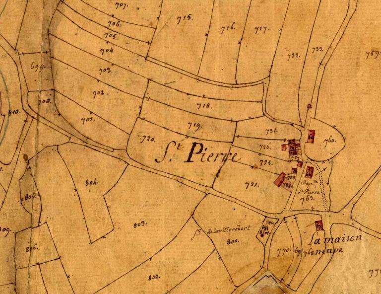 En 1864, lors de l'annexion de la section du Val (Pluduno) à Saint-Lormel, les habitants de Pluduno désirent rapporter chez eux la statue de Saint Pierre à l'aide d'une charrette. Les chevaux en arrivant au hameau de la Saudrais (situé à la limite des deux communes) refusèrent d'avancer davantage. Les habitants interprètent cette situation comme une volonté du saint de rester dans son édifice ils la réinstallent sur son corbelet.