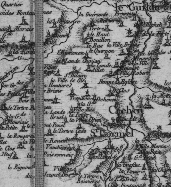Le Guébriand, qui est un affluent de l'Arguenon accueillait l'ensemble des moulins à eau, le premier au lieu-dit de Dieudy, le second à proximité de la Guérande (probablement proche de l'actuelle route départementale 19), et le moulin à marée de Bellenray qui subsiste encore aujourd’hui. Un relevé de juillet 1848 dénombre deux moulins sur la section du Val, le moulin de Dieudy et celui de Bellanray, mais cet inventaire semble non exhaustif.