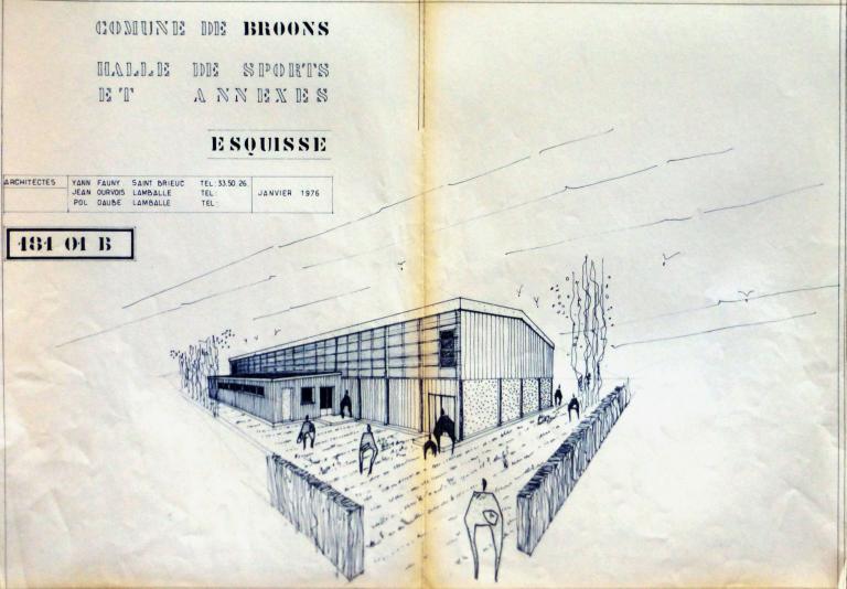AD Côtes-d'Armor : 1126 W 16. Halle de sports et annexes : esquisse. Y. Fauny, J. Ourvois & P. Daubé, 1976.