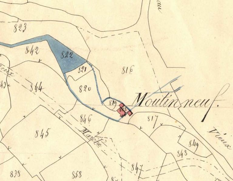 Aujourd'hui disparu, l'ancien moulin à farine de Moulin Neuf dépendait de la seigneurie du Vieux Marché. Il est figuré avec ses deux roues sur le cadastre napoléonien de 1835, alimenté par le ruisseau de Saint-Ethurien, affluent du léguer.