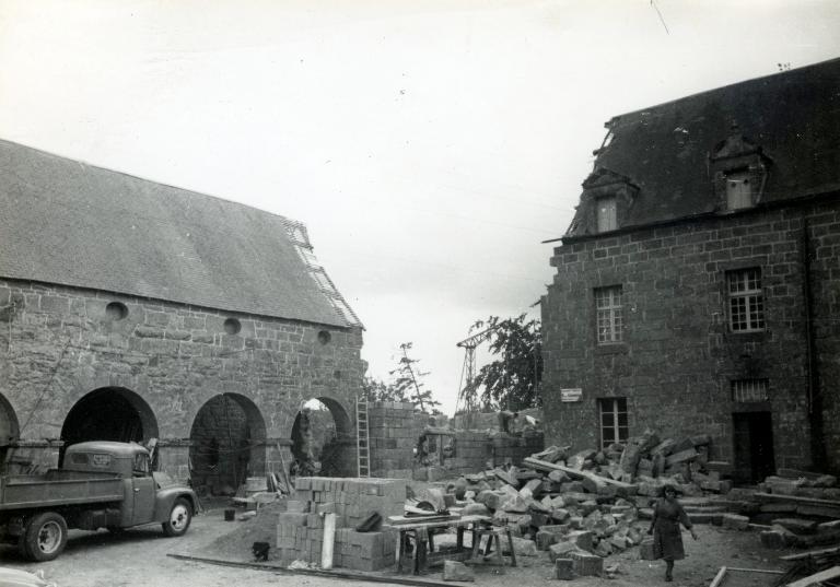 Il ne reste aujourd'hui que la dépendance ouest, un bâtiment en granit appareillé, vraisemblablement la maison du métayer construite dans le prolongement d'une galerie à usage de remise. Cette galerie comprend quatre arcades en plein cintre surmontées de quatre jours d'aération en oeil de boeuf (oculi). Elle est peut-être inspirée par celle du manoir de Guernanchanay à Plouaret. Dans le mur arrière, au niveau du sous-sol, plusieurs ouvertures servent probablement à passer des matériaux dans la remise. Une grange et une petite écurie viennent compléter la cour à l'ouest.