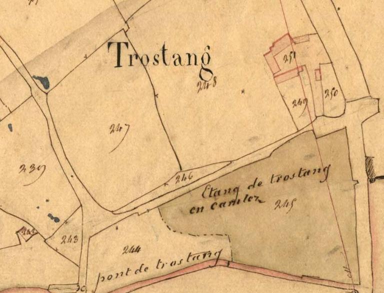 A l'origine, la seigneurie de Trostang se compose d'un manoir, d'une métairie, d'un moulin à eau situé en contrebas du manoir et d'un étang de retenue dont le toponyme Trostang (de traou stang, le creux de l'étang) est explicite. Cet ensemble se situe à 1,250 km au sud du bourg de Camlez.