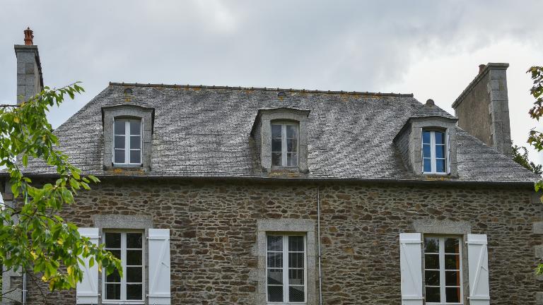 Plan rectangulaire centré. Proportions harmonieuses par la présence de trois travées correspondant aux ouvertures et lucarnes. Construction en moellons de granite, à l'origine recouverte d'un enduit. Les ouvertures sont encadrées de pierre de taille. Le toit est couvert en ardoises scandées par des lucarnes à croupes sur la façade nord, et des lucarnes-pignon à fronton triangulaire sur la façade sud. A l'origine, la toiture était ornée d'épis de faîtage en zinc.