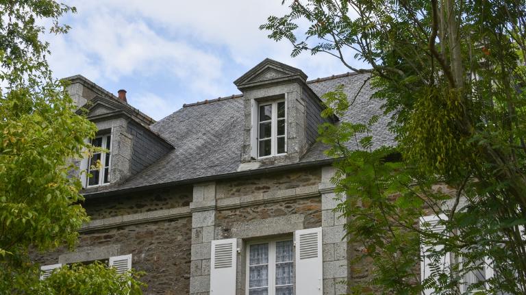 L'originalité de l'édifice réside dans sa double orientation et la réalisation de façades dissociées. La façade donnant sur le parc rappelle les élévations sobres des malouinières du 18e siècle avec pour seul ornement : des lucarnes dont les ouvertures sont en arc segmentés et moulurés. Elle a perdu son enduit qui lui donnait une apparence plus soignée. Au contraire, la façade principale, sur rue, avec ses frontons triangulaires qui coiffent les baies du rez-de-chaussée et les lucarnes, se rattache davantage au style néo classique.