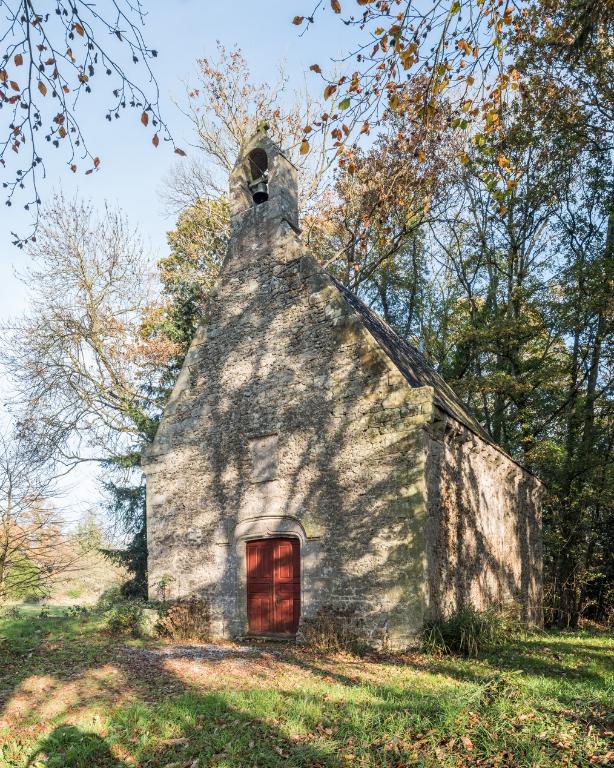 Une première chapelle existait déjà en 1360, à cet emplacement. Pierre Thomas de la Caunelaye la fait entièrement rebâtir en 1544. Les sablières et les entraits de la nef sont ornés de décor en sifflet caractéristique de cette période.