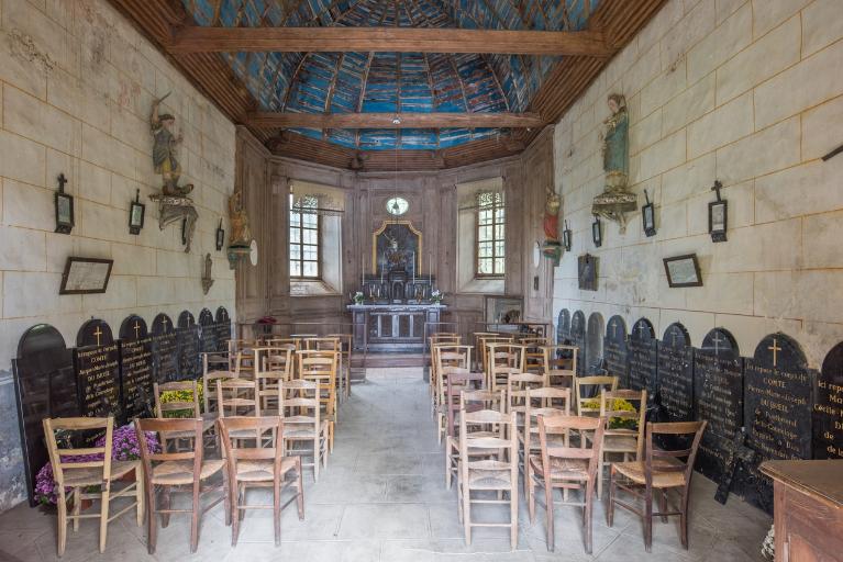 La chapelle, orientée à l'est, comporte un vaisseau unique terminé par un chevet à pans coupés.