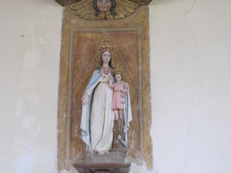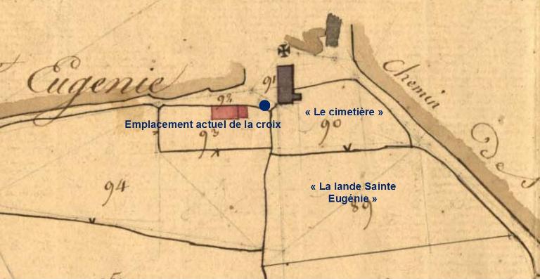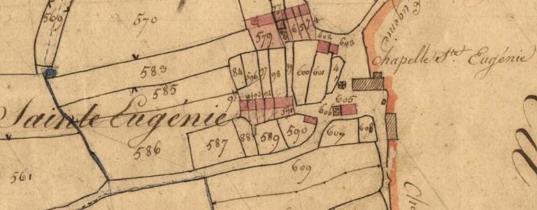 L'actuelle chapelle de plan rectangulaire présente une voûte lambrissée. L'enduit effrité fait apparaître un pré-enduit de terre. Les deux bénitiers sont des remplois de colonnes de l'époque antique. La crédence liturgique du 14e siècle n'a pas été déplacée lors de l'agrandissement de la chapelle, une autre est créée dans l'actuel chœur. La chapelle conserve une statue en bois de sainte Eugénie datant du 17e siècle ainsi qu'une statue de la Vierge aux sept douleurs accompagnée de l'Enfant Jésus, cette dernière est située à l'emplacement d'une chaire dont l'abat-voix, soutenu par un ange, est conservé.