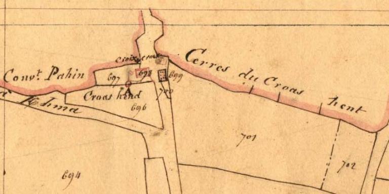 Croix datée 1625 sur son socle. Elle figure sur le cadastre de 1834 en limite de paroisse avec celle de Trévou-Tréguignec. Le fût est brisé, à l'origine il était plus haut.