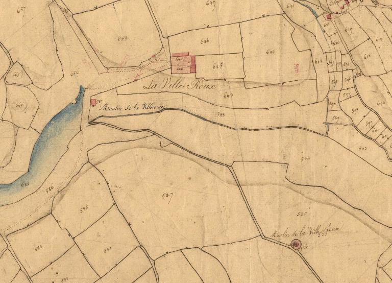 L'étude du cadastre de 1827 révèle la présence de plusieurs moulins à eau (Camboeuf, la Favrais, L'abbaye de Trégouët, de la Ville-Rault, Trémeur, du Pont Hellen, du Vaulambert, moulin à fouler de Bertache) et trois autres moulins à vent (Gromac, Halouse, et Chenot). Le dictionnaire historique et géographique d'Ogée mentionne 19 moulins dont deux à vent (la Ville-Rault et Brandefert).