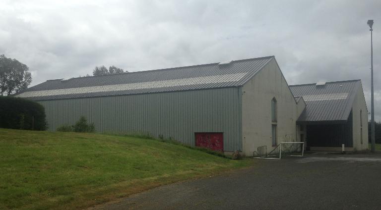 Les pignons de l'édifice, en forme de pentagone, sont réalisés en béton (parpaing de béton). La charpente est en lamellé-collé, sur laquelle est présente une couverture métallique de tôle nervurée. De plus, un bardage métallique fait office de mur sur les façades latérales nord et sud.