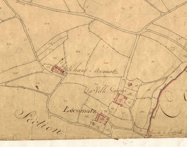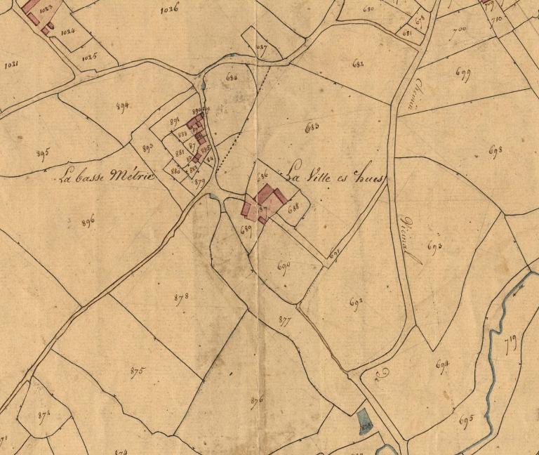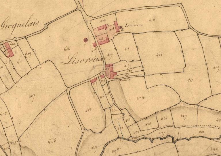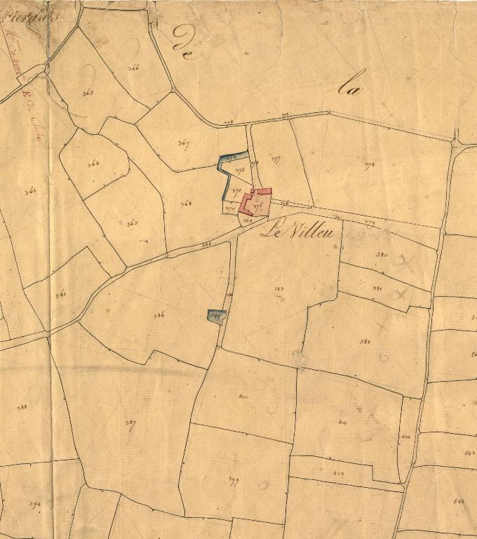 Le manoir présentait en 1827 sur le cadastre ancien un logis a vocation agricole, cadastré en quatre parties (339 et 338 maison et cour, 337 bâti rural et cour, 336 bâti rural. La présence de fossés encerclant les parcelles 341 et 342, toutes deux nommées le jardin de derrière, ainsi que la parcelle 343 "Le talus des douves" permettent de confirmer la présence autrefois d'un manoir.