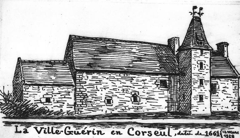 Construit au 16e siècle par la famille Harel. Le colombier et la chapelle sont détruits. Le logis principal s'élevait en face des pavillons d'entrée. Au 17e siècle, la famille Lerenec fait construire à côté un nouveau logis, nommé la Ville-Guérin.