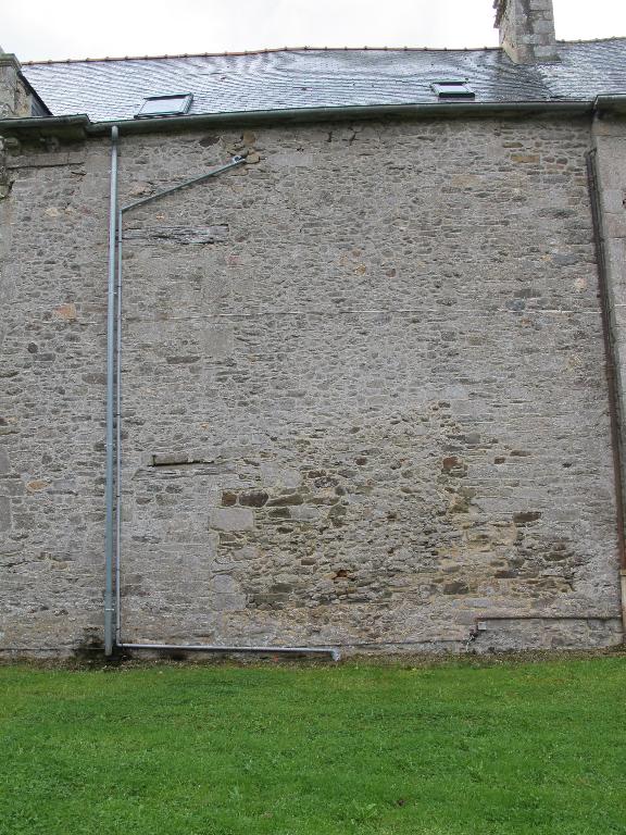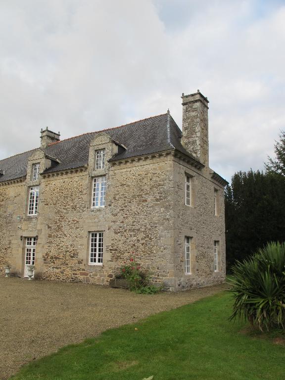 Construit en moellons de granite et de schiste, présente partiellement au sud un appareillage en pierre de taille. Cette façade à quatre grandes travées, en présente une cinquième avec deux baies de taille réduite, dont celle du premier étage est datée du 15e siècle, époque d'érection du premier manoir sur le site. Les oculus désormais aveugles avaient pour vocation d'éclairer l'escalier primitif.