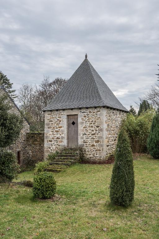 Edifice construit en pierre de taille et en moellon de granite, en front de parcelle. Il possède une petite cour et un jardin enclos à l'arrière, au sud. Le plan simple en profondeur comprend deux pièces à feu au rez-de-chaussée, séparées par un vestibule d'entrée. L'étage abrite deux autres pièces à feu desservies par un escalier en vis placé dans une tourelle en hors-oeuvre, sur la façade arrière. Une des pièces de l'étage possède une cheminée monumentale au décor Renaissance. Le comble à surcroît est également divisé en deux pièces dépourvues de cheminées. A chaque palier, des portes jumelées cintrées desservent les pièces : en granite pour celles de l'étage ; en bois pour celles du comble.