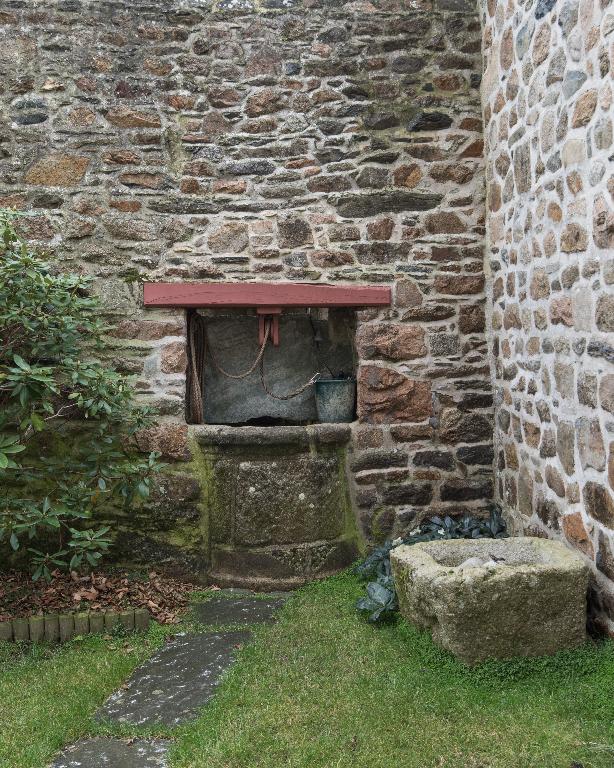 Le puits d'origine a été inséré dans un mur, monté entre la cour et le jardin.
