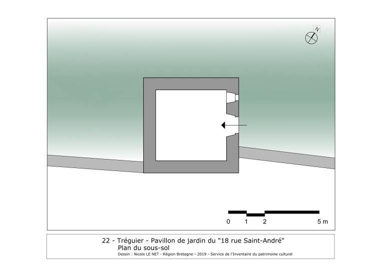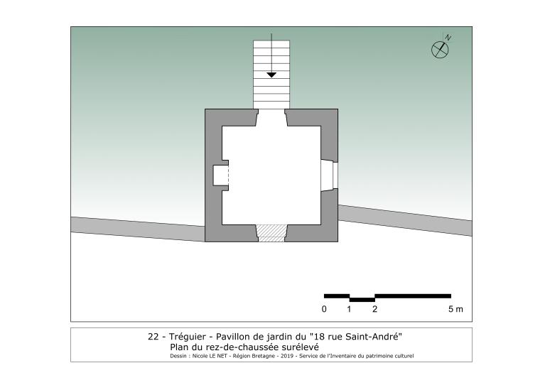 Au fond du jardin, un pavillon de plan carré est construit à cheval sur le mur de clôture. Il présente un rez-de-chaussée surélevé sur sa face nord (auquel on accède par un escalier extérieur), et un sous-sol entièrement dégagé sur sa face est qui permet de rattraper la légère dénivellation du terrain. Le rez-de-chaussée surélevé possède une cheminée et deux fenêtres dont l'une offrait une vue sur le quai, avant la surélévation du mur de clôture et la construction de maisons à étage.