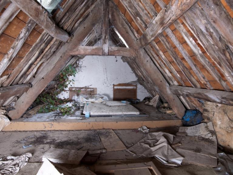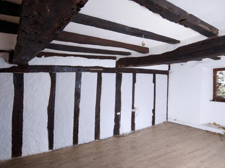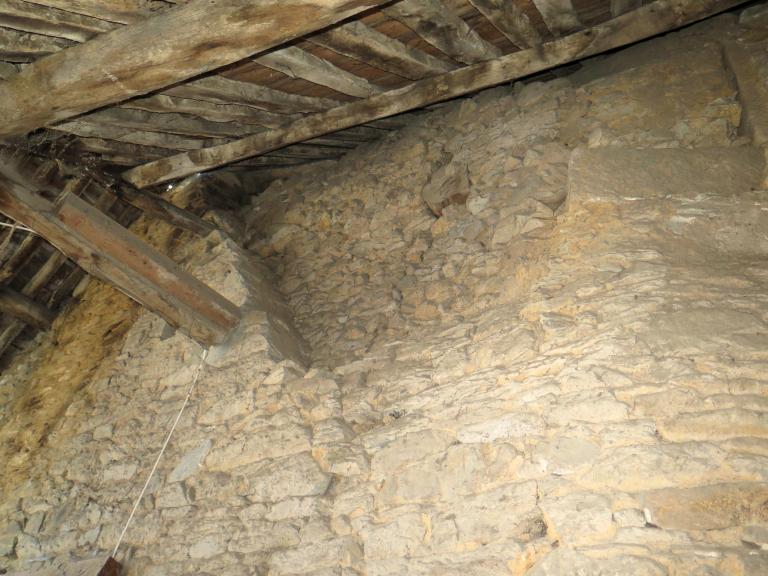 L'étage de comble permet d'observer la pente du toit du logis d'origine ainsi que les vestiges de la partie haute de l'escalier en vis (arasé à une date inconnue). La charpente a été réalisée avec des bois de qualité moyenne voire médiocre.