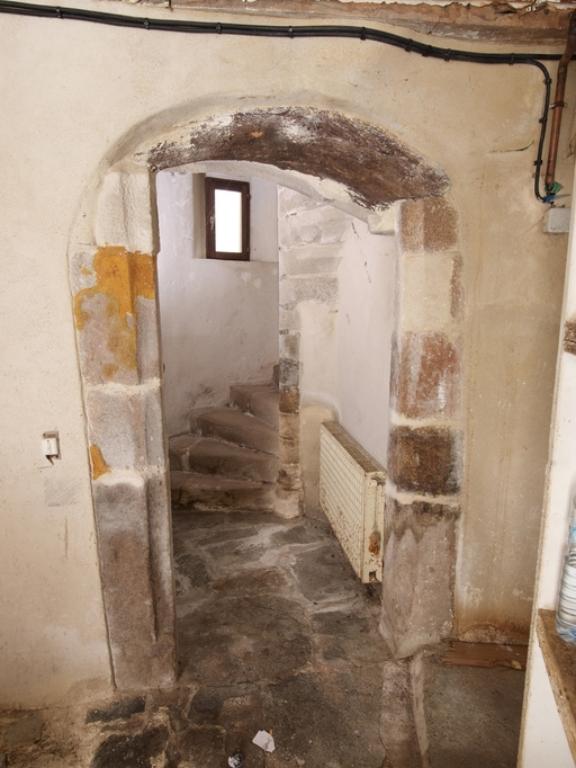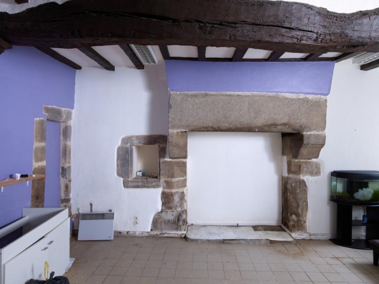 Au rez de chaussée, côté rue, grande pièce dotée d'une cheminée et d'une niche sur le mur ouest, porte à linteau droit et porte en arc plein cintre donnant sur une pièce en retour d'équerre vers le sud.