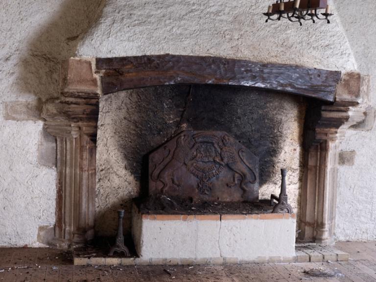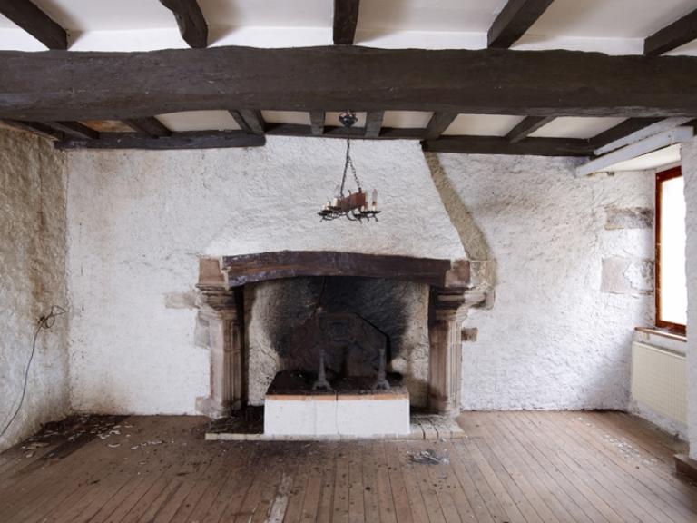 Au premier étage, côté rue, grande pièce avec cheminée monumentale à faisceau de colonnettes en partie remontée (manteau en bois), niche-crédence à accolade (il pourrait également s'agir d'un passe plat) et fenêtre ancienne (vers le sud, murée). Coté cour en retour d'équerre vers le sud, seconde pièce desservie par une porte à linteau droit à accolade : cette pièce à plafond bas (une chambre ?) est dotée d'une cheminée, d'une armoire murale au décor gothique flamboyant (martelé) et d'une niche en chicane (à cachette) sur le mur nord.
